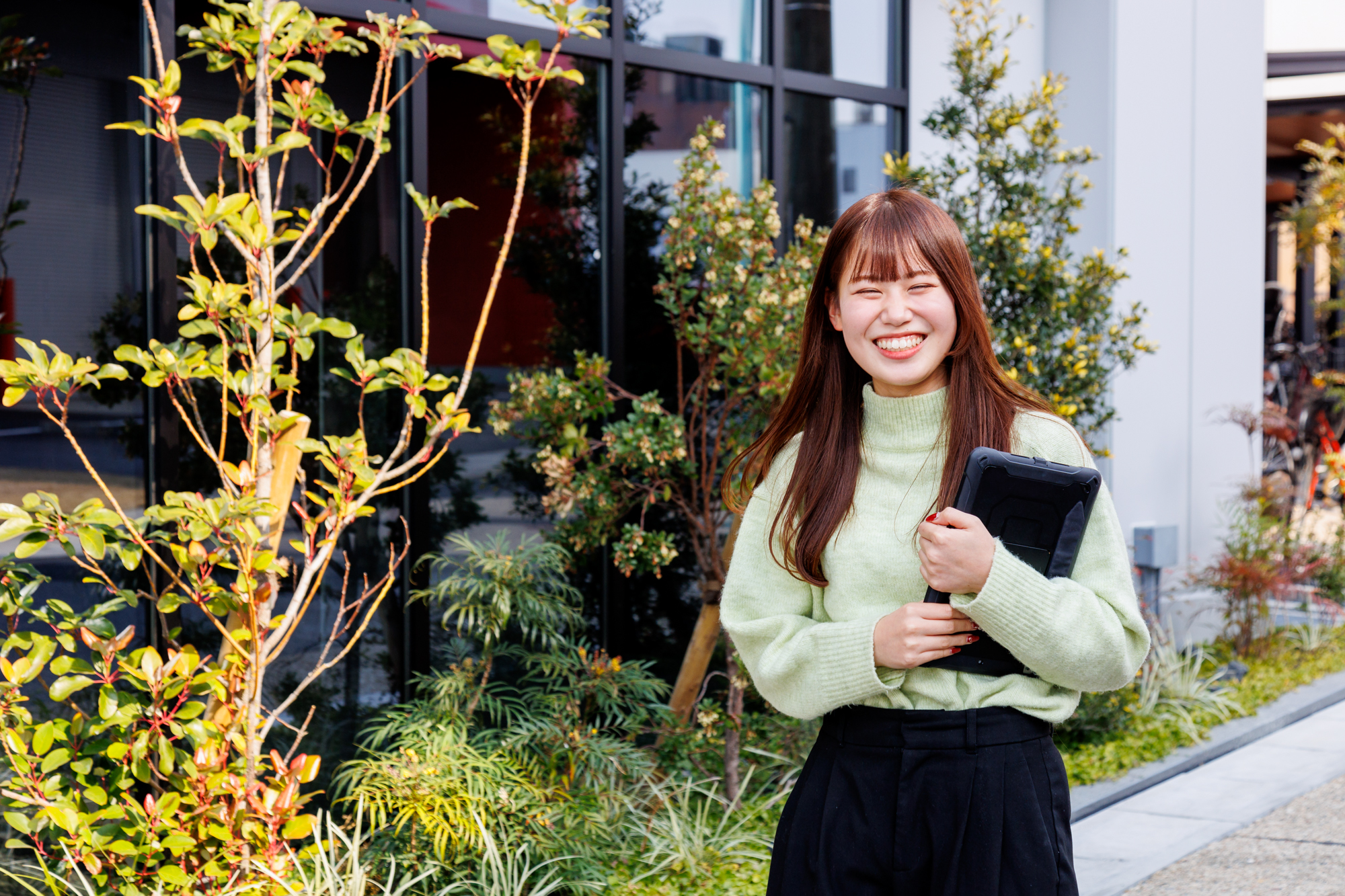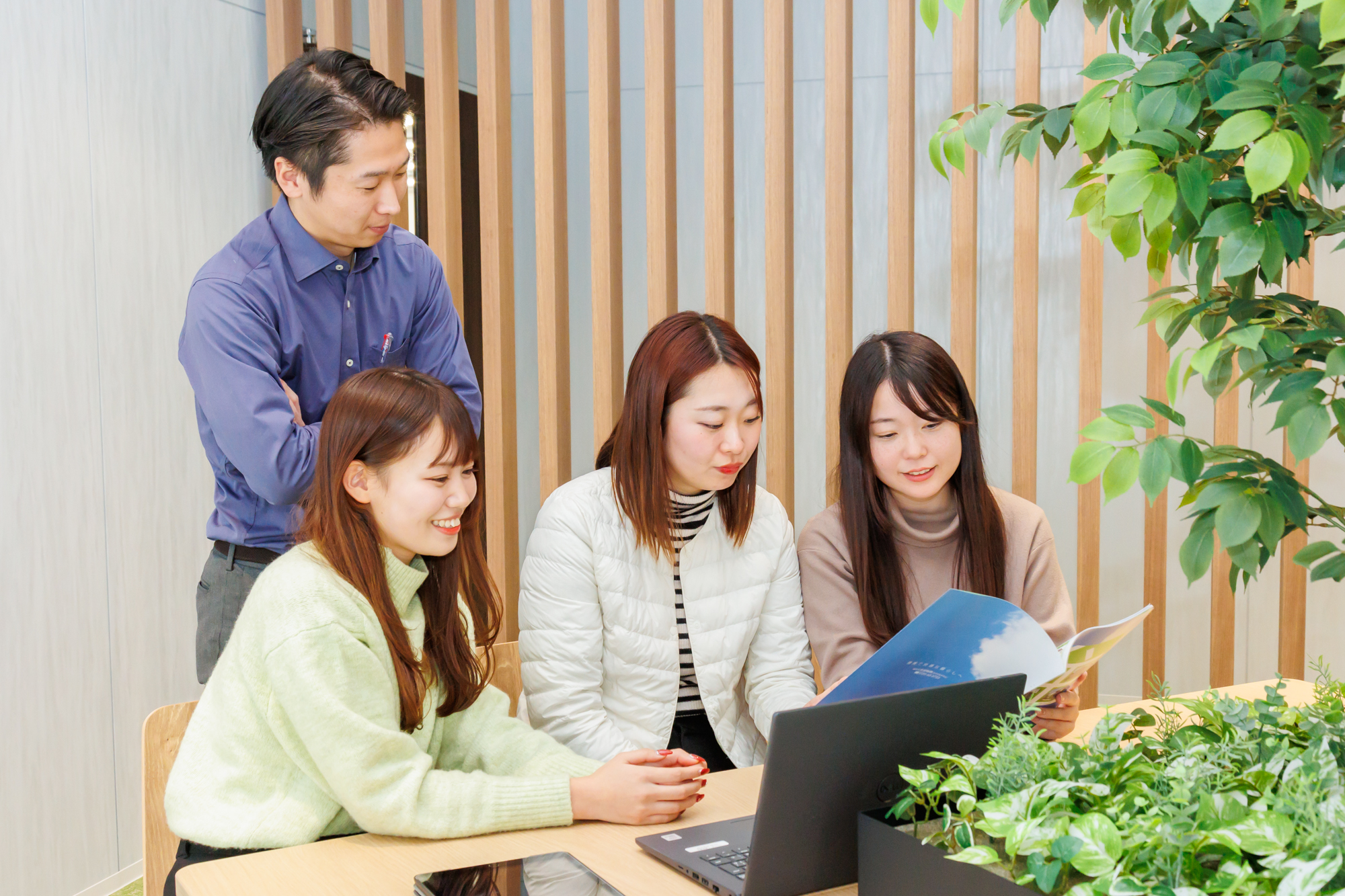 当社は教育サービス事業を中核としています。語学・海外事業や、太陽光発電システムなどを扱う住環境デザイン事業をはじめとした、人と人、人と自然が、たすけあえる社会の実現をめざして多彩な事業を幅広く展開しています。社内は20~30代の若手社員が中心で、風通しが良く明るい社風が特徴です。