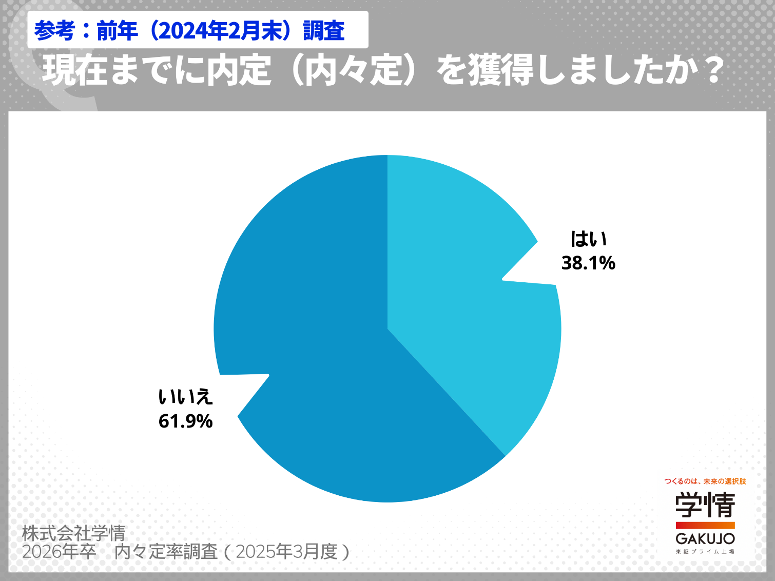 この度、株式会社学情では、2026年卒業・修了予定者対象に内々定率調査(2025年3月度)を実施いたしましたので、調査結果を発表いたします。
