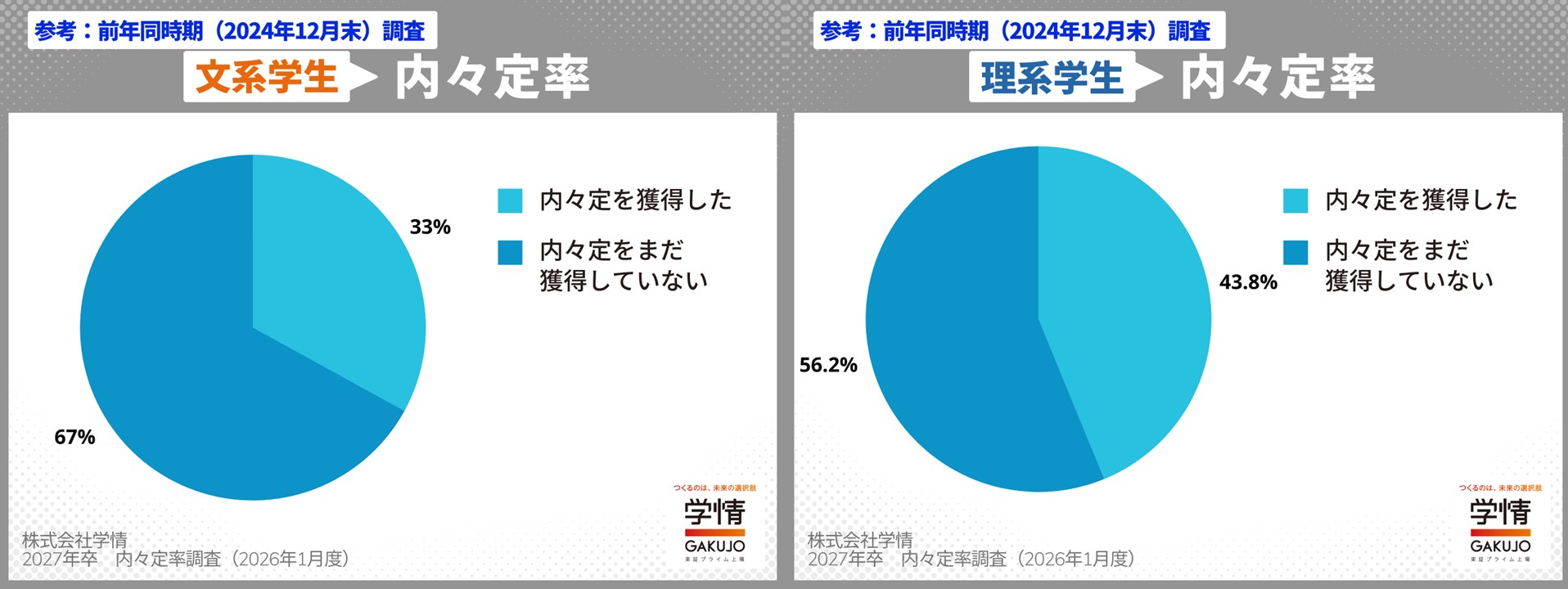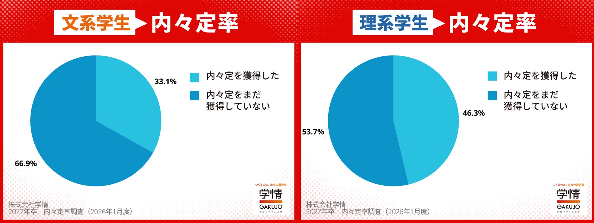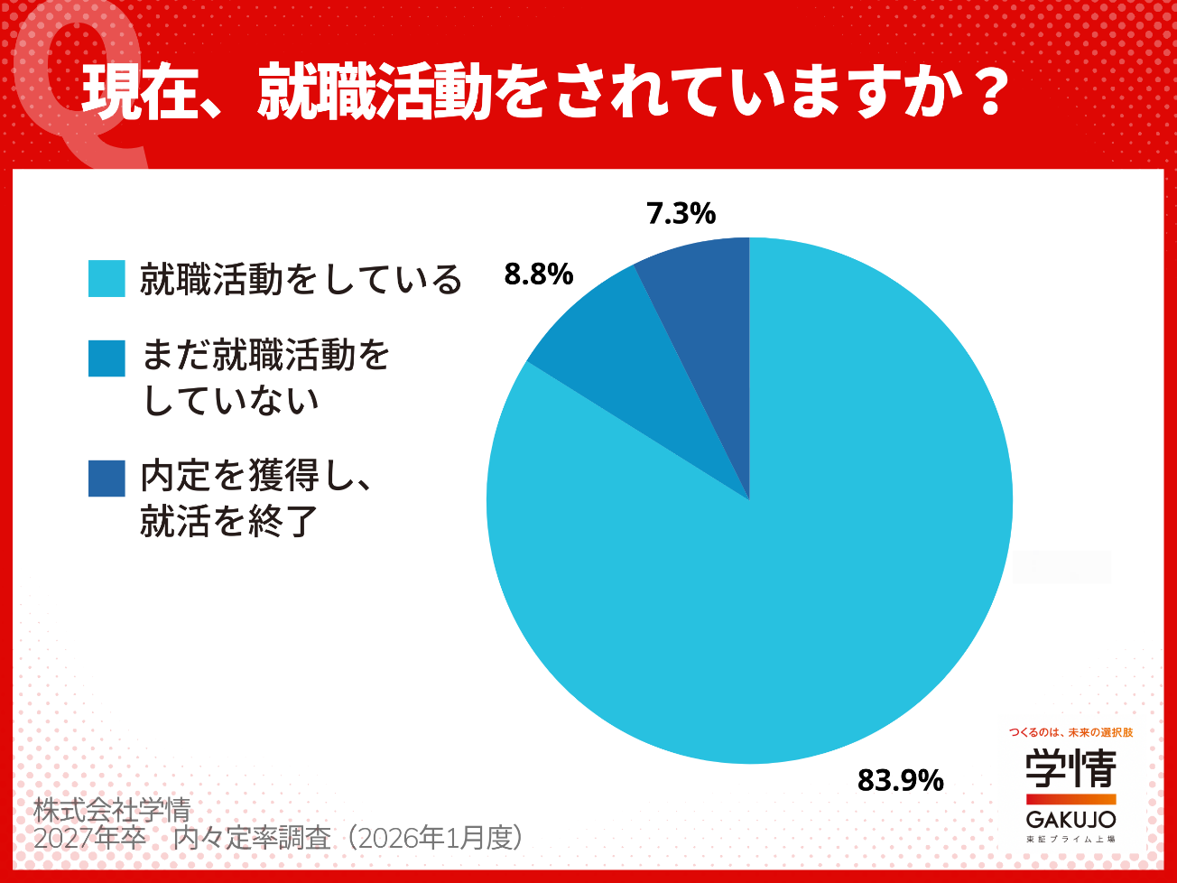 この度、株式会社学情では、2027年卒業・修了予定者対象に内々定率調査(2026年1月度)を実施しましたので、調査結果を発表いたします。