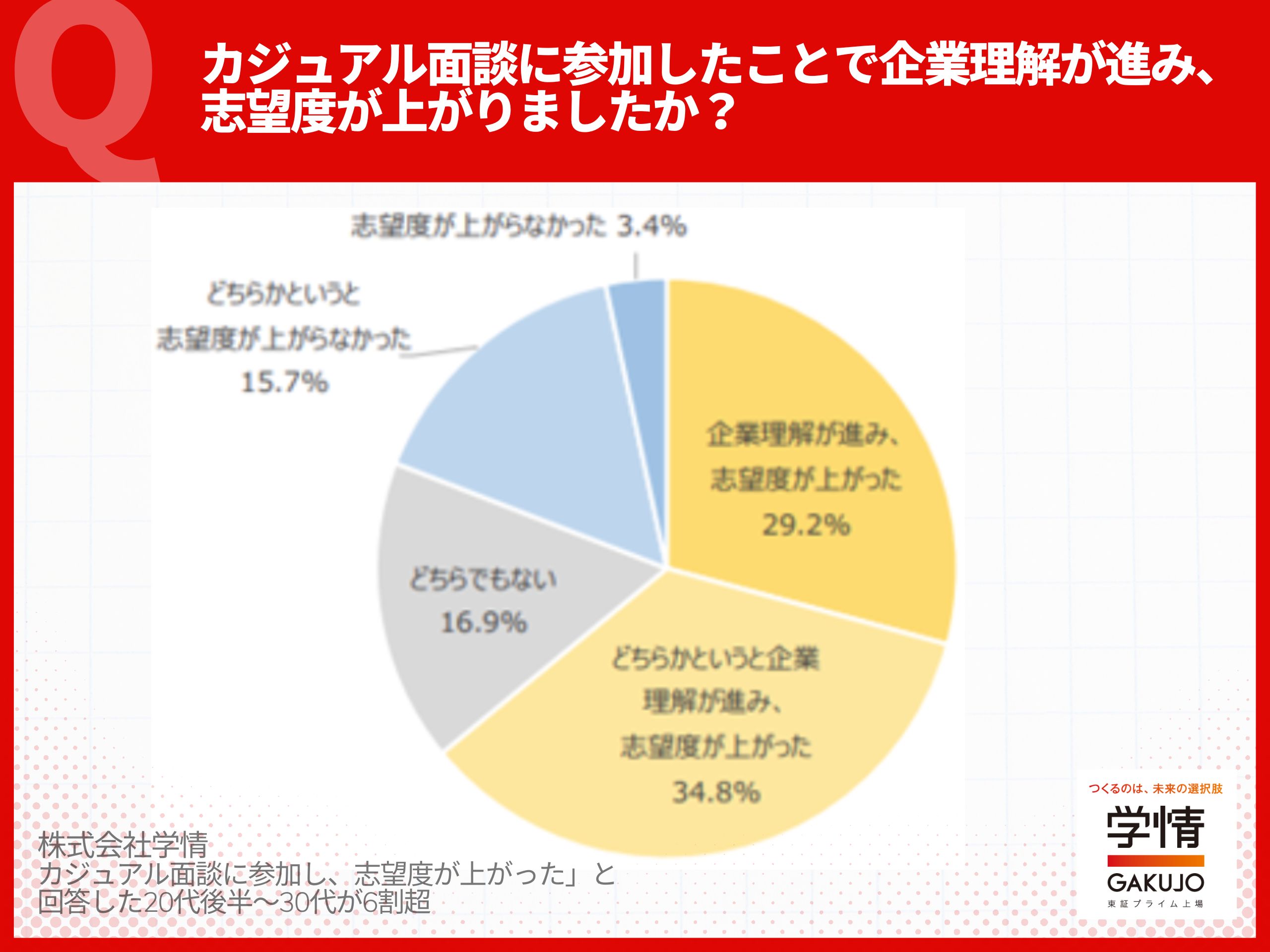 株式会社学情の調査によると、カジュアル面談に参加した20代の約6割が「志望度が上がった」と回答しました。