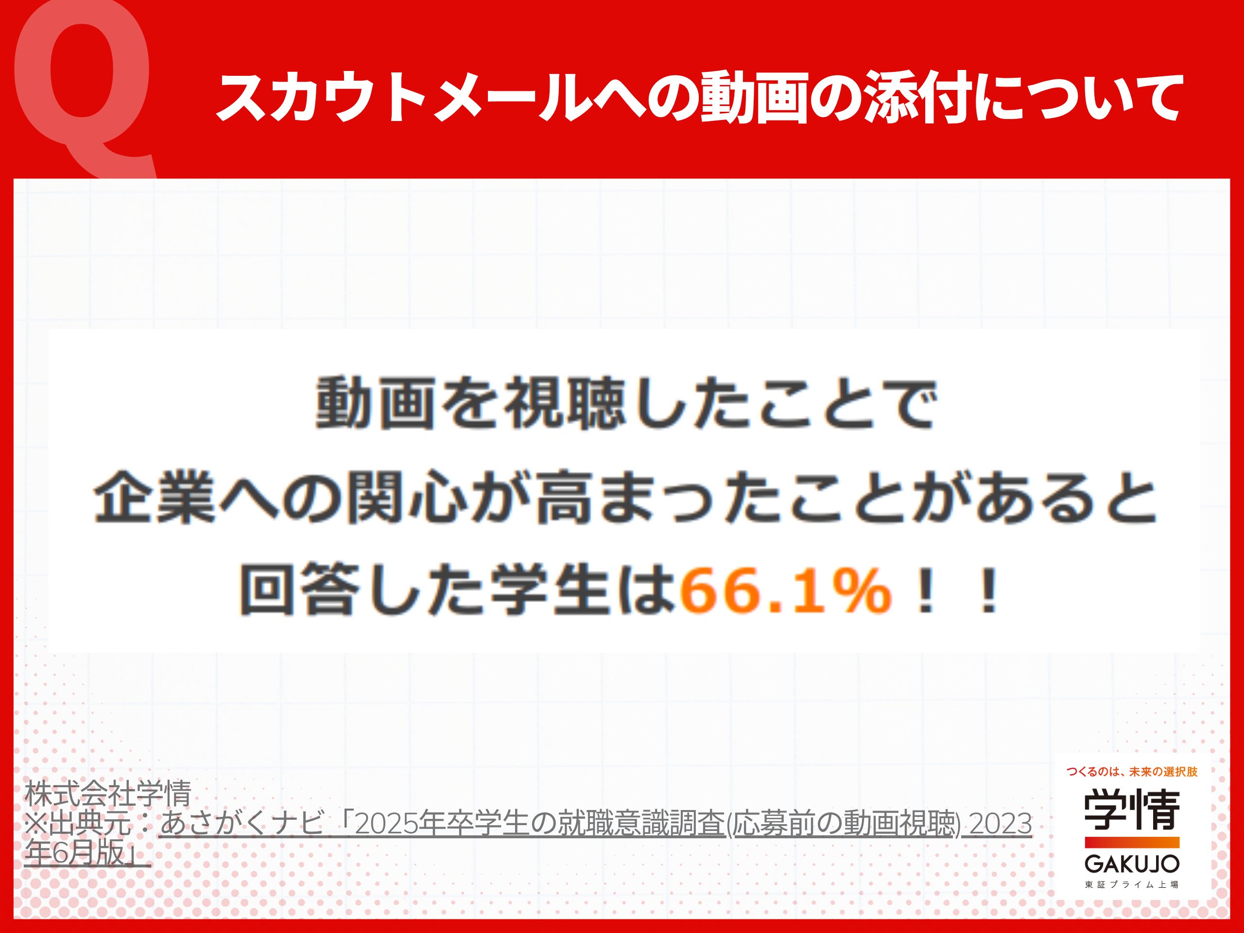 学情の調査によると、66.1%の学生が「動画を視聴したことで企業への関心が高まった」と回答しています。