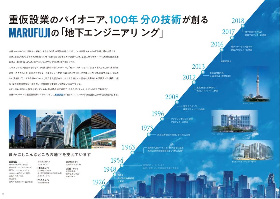 地下エンジニアリングという企業コンセプトを尊重しながら、事業理解を促進するため、学生にも馴染みのある実績をより多く取り入れたデザインに仕上げています。